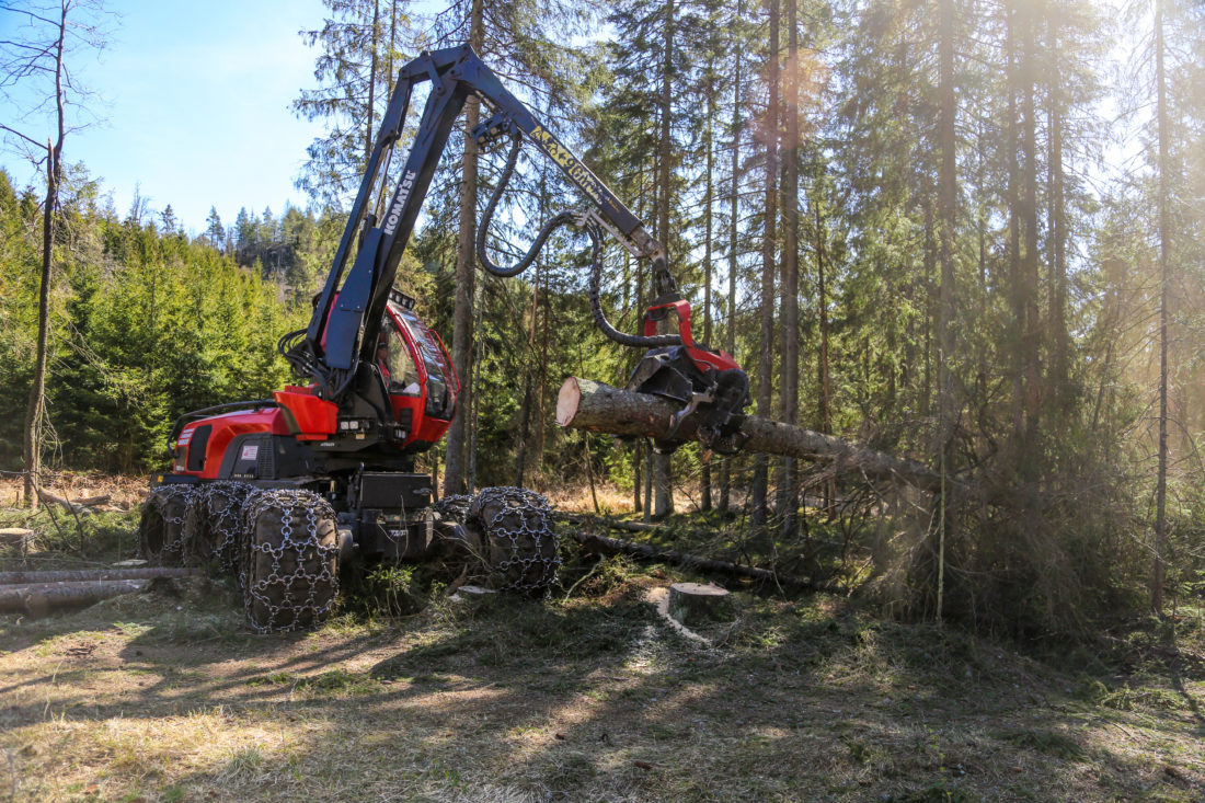 Hun sitter i en Komatsu 931XC og feller trær (sluttavvirking) i et relativt bratt skogsparti. Det bratte henget er imidlertid ingen sak for den 23 tonn tunge skogsmaskinen – Komatsus nest største. Lekende lett tar hogstaggregatet tak i en 30 meter høy gran, kutter den av, legger den vannrett i lufta før den kvistes og kappes opp i forskjellige lengder. Det er tydelig at Linn-Merete har gjort dette utallige ganger tidligere. Hele prosessen er gjort på under et halvt minutt. Det sitter i ryggmargen etter 17 år.