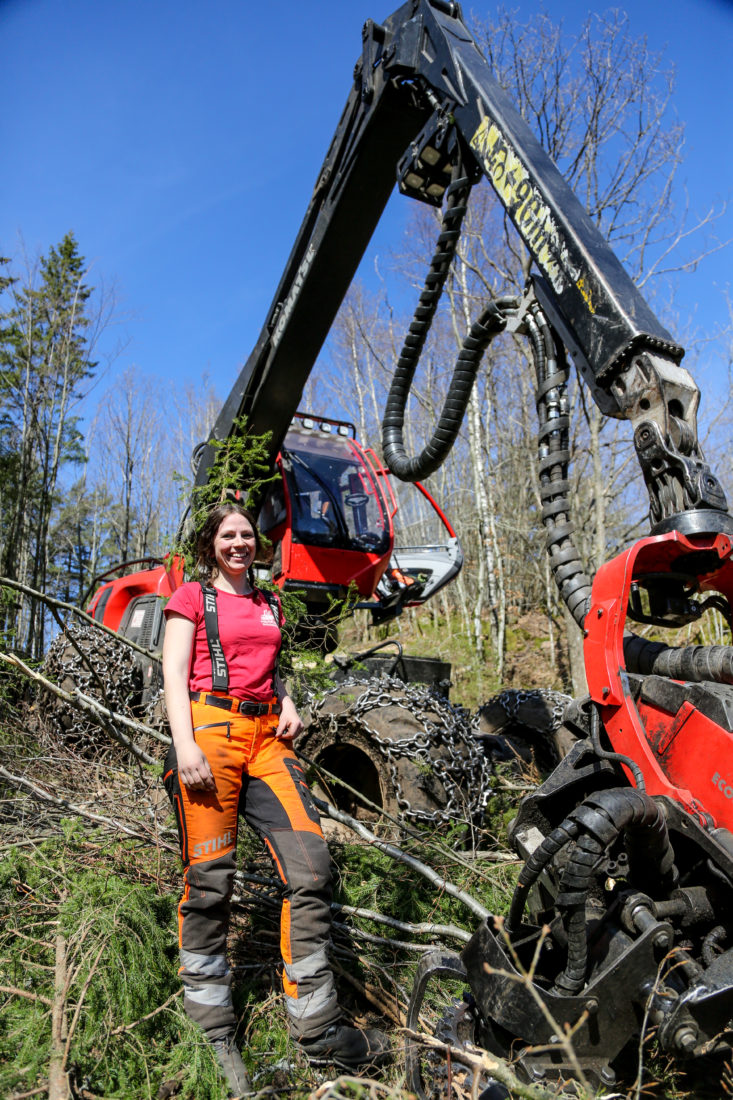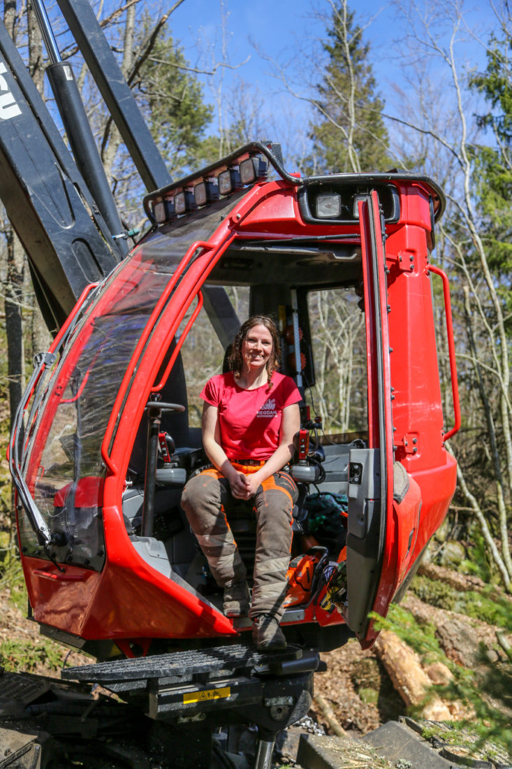 – Jeg liker jo «skauen» veldig godt, da! Jeg trives godt med å være ute hele dagen og produsere tømmer. Jeg liker tanken på at den stokken jeg hogger her, skal mange andre ta del i og behandle; fra lassbærer og tømmerbil til sagbruk og trevarehandel, før den kanskje ender opp som et panelbord på et hus. Dette er starten på en prosess som er viktig for mange, og det er artig å tenke på! I tillegg er det moro med maskiner. Ryker det en slange så må den fikses, og det er interessant og gøy å gjøre det selv, sier hun engasjert.
