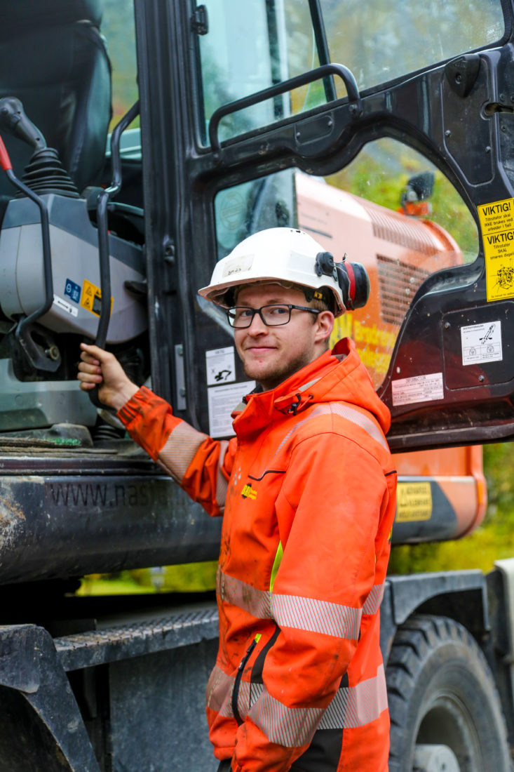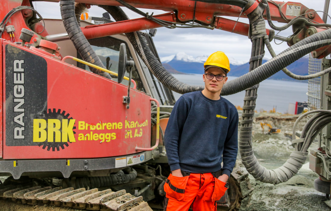 Maskinfører Kevin Heika Karlsen (20) tok fagbrev i mai i år, etter to års læretid i bedriften. Vi møter ham på et VA-prosjekt i Nordkjosbotn.
