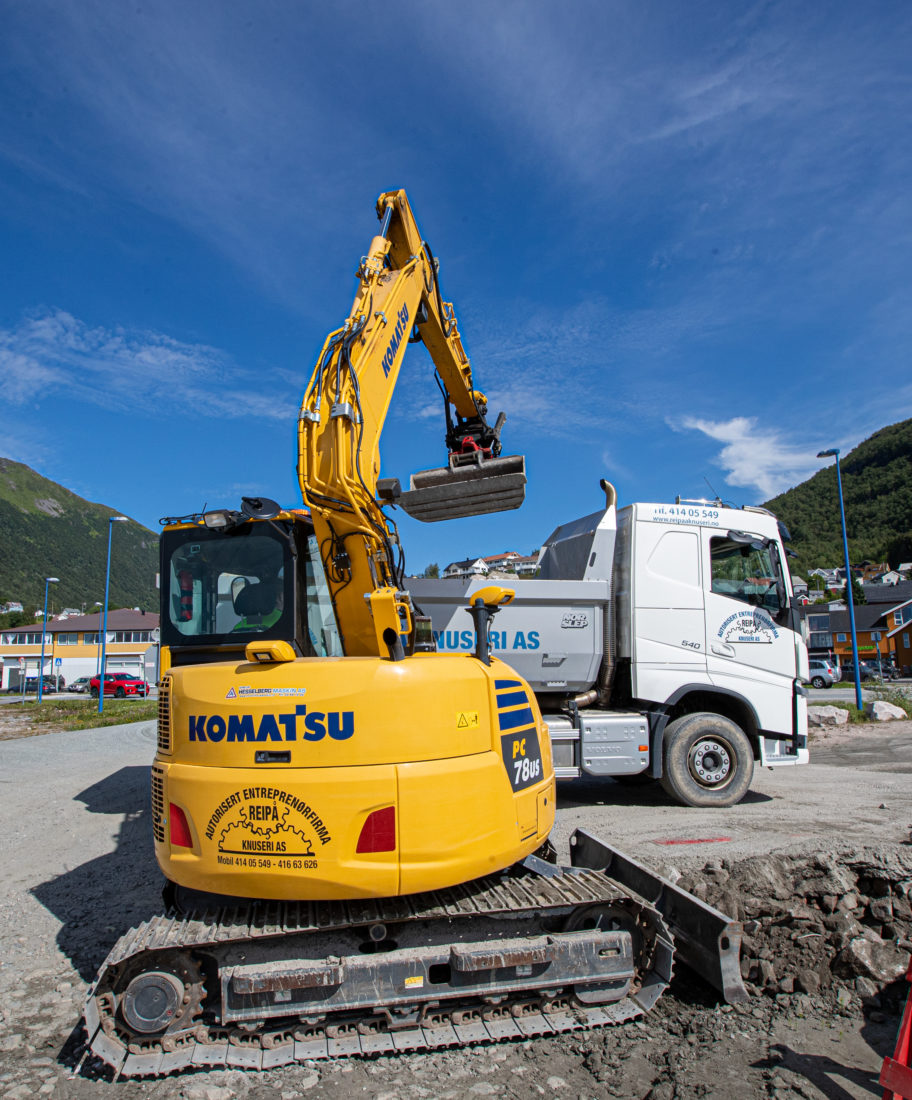 – Det morsomste er å kjøre gravemaskin. Jo større jo bedre. 480-en i bruddet er den største vi har i firmaet. Den veier 50 tonn. Og høvel. Jeg har noen timer i høvelen også. Både her i bruddet og for å holde det slett på grusveier. Det er spennende. Greit å ha det på stell, sier Timo Svendsgård.