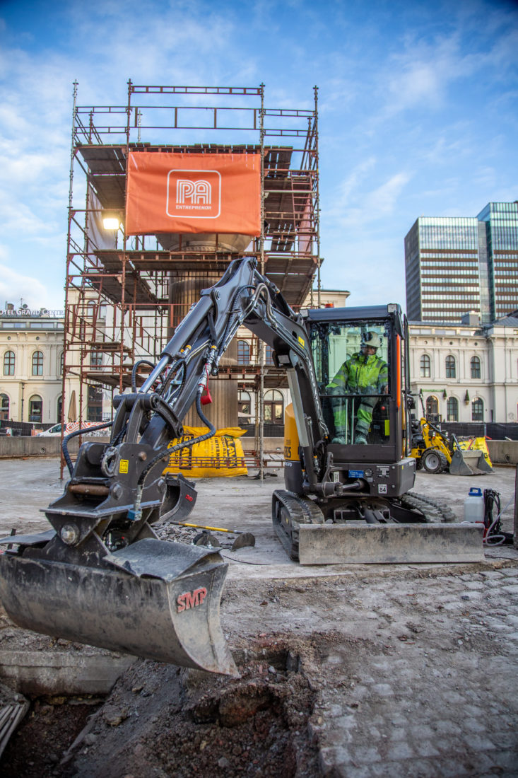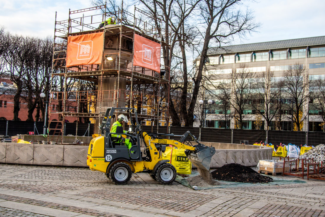 – Dette er noe av det siste som gjenstår mellom Bjørvika og byen bak, og det blir et flott monument i Oslo sentrum. Det er veldig artig for oss å få være med på dette, sier Svein Kildal. Han er anleggsleder i PA Entreprenør, som har fått oppdraget med å pynte opp plassen utenfor Norges desidert største kollektivknutepunkt.