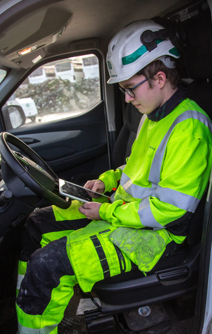 – Akkurat i dag er jeg på driftspatrulje, som går ut på å kjøre rundt og sjekke at alt er i orden på og langs veien, og deretter gi avviksrapporter. Det kan dreie seg om skilting, veimerking, dårlig asfalt, rekkverk, håndmåking, salting og så videre. Jeg håper selvfølgelig å ta fagbrev i dette faget, og fagprøven blir vel i november 2023.