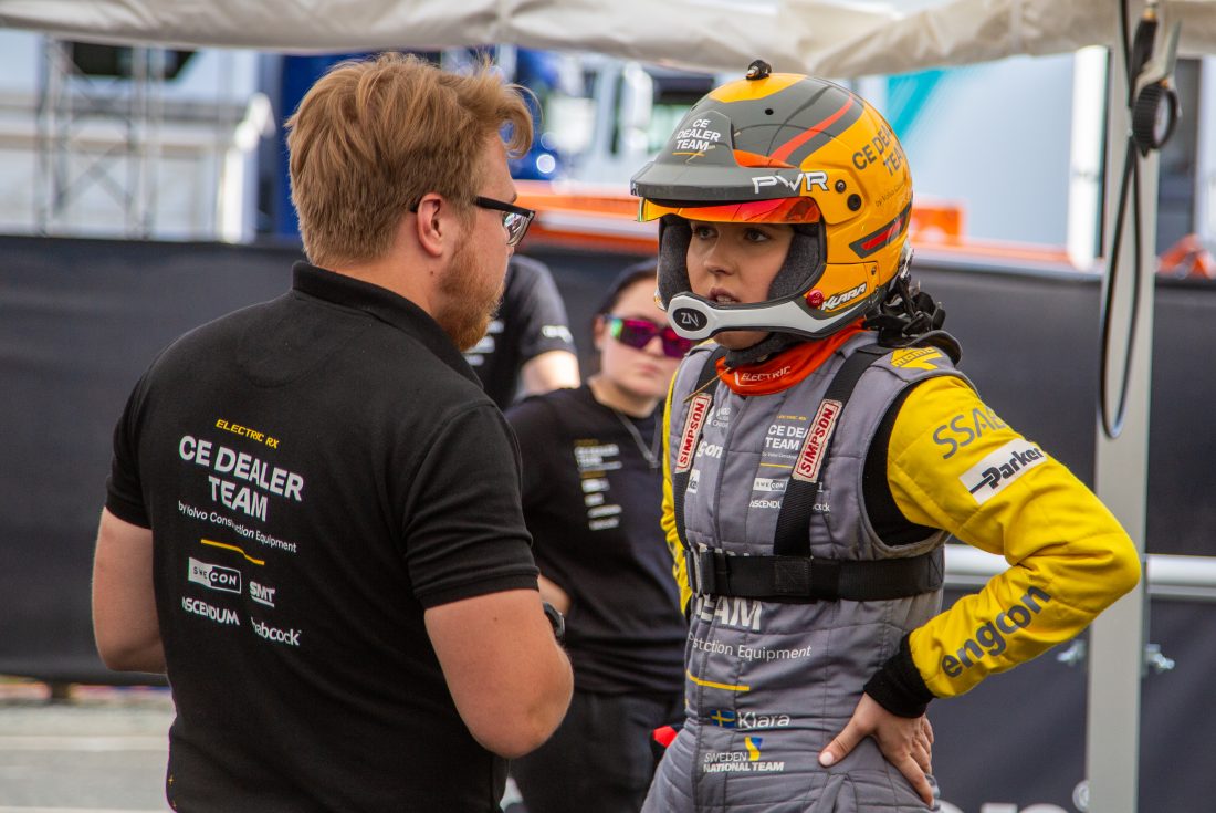 Her er det Klara Andersson, som kjører for Construction Equipment Dealer Team, som gjør seg klar til race. (Foto: Runar F. Daler)