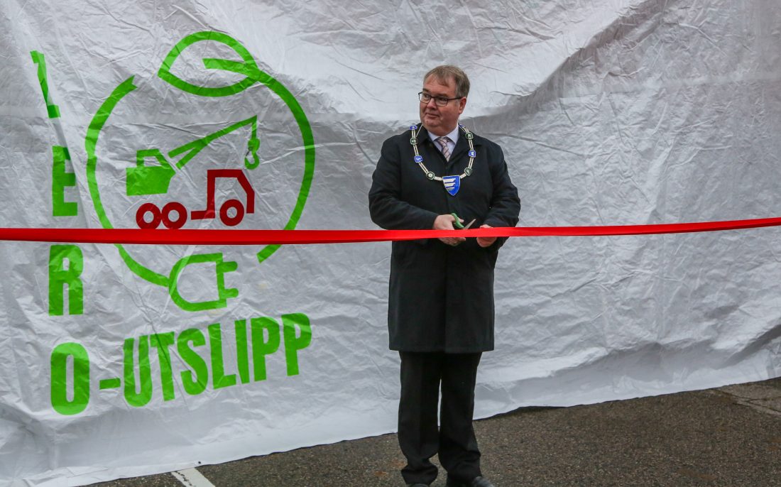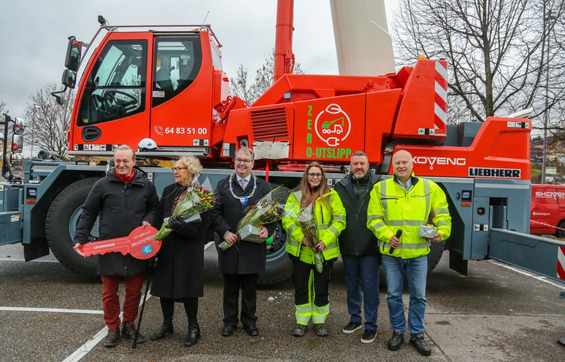 – Gratulerer så mye til Asle Skoveng Kranservice! Som ordfører er jeg stolt over at vi har et lokalt næringsliv som blir representert her ved Skoveng, som er fremme i skoene og tar det viktige løftet ved å sikre reduksjon av klimagassutslipp på bygge- og anleggsplassene. Det at vi nå skal få gleden av å introdusere og avduke Nord-Europas første elektriske mobilkran på hjul, er fantastisk moro! Og det er veldig artig at det blir lagt hit til Lillestrøm, landets niende største kommune, med 93 000 innbyggere, hvor vi satser på et variert og godt næringsliv, sa han til en applauderende forsamling.
