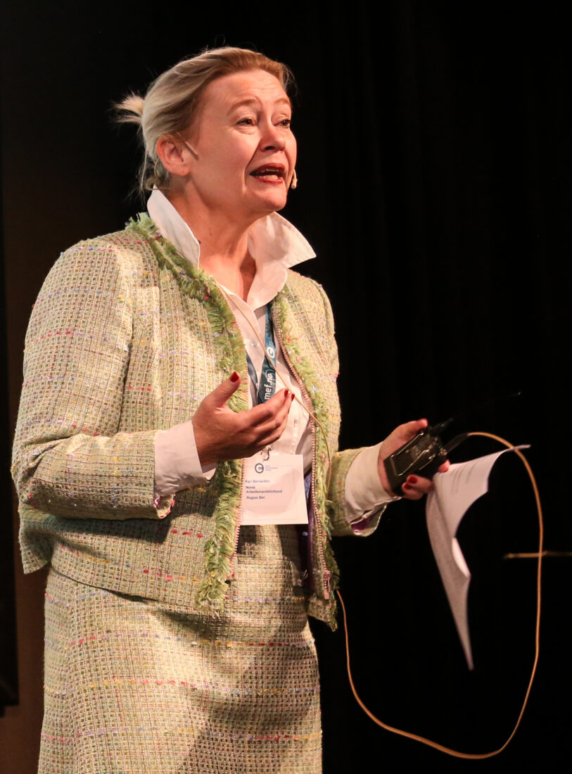 – Det kan ikke være opp til oss entreprenører å skrive om hvor flinke vi er til å kjøre sparkesykkel eller å spare lys på kontoret for å vinne en jobb, sa Mona Milde fra Veflen Entreprenør. (Foto: Runar F. Daler)