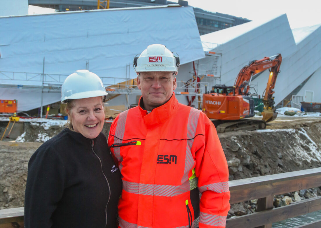 Direktør for Polaria, Anne Grete Johansen, og Jon Egil Sørensen, daglig leder i Einar Sørensen Maskinentreprenør. (Foto: Runar F. Daler)